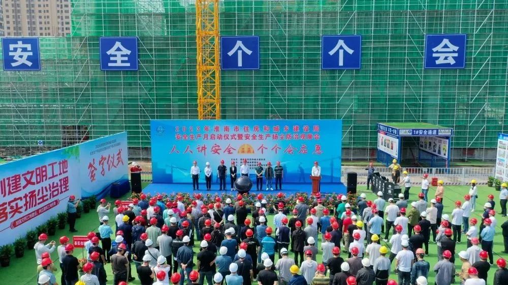 6月6日,淮南市“2023年安全生产月启动仪式暨安全生产扬尘防治观摩会”在苏航建筑公司承建的淮南新朝阳医院项目举行,市住房和城乡建设局领导、各县(区)住(城)建局负责人、市建管处全体网格员、部分在淮项目建设、监理、施工单位项目负责人近300...